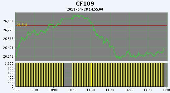 主力CF109合約當(dāng)日交易走勢(shì)