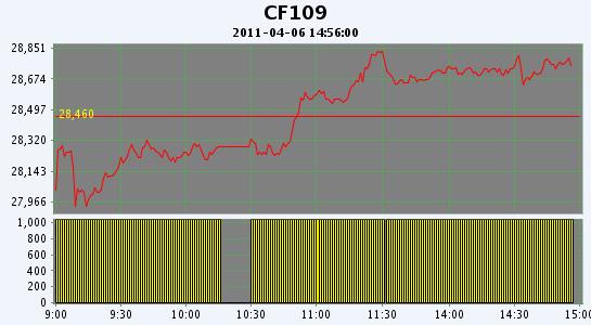主力CF109合約當(dāng)日交易走勢