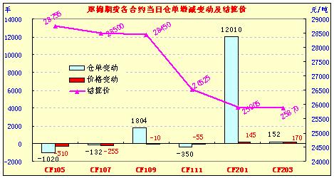 4月6日,鄭棉CF1109合約早盤探低后在多頭承接買盤推動下回升,午間在空頭回補(bǔ)支撐下上沖,午后高位震蕩,日線形成陽線,日內(nèi)成交量小幅增加,持倉量變化不大。CF1109合約日成交1800168手,日增倉1804手,終盤持倉量385868手;CF1111合約日成交7890手,日減倉350手,終盤持倉量26338手。基本面情況:現(xiàn)貨到廠報價繼續(xù)下探,由于山東魏橋紡織下調(diào)了其皮棉采購價,市場信息再度受挫,除去低等級棉報價繼續(xù)下調(diào)外,高等級棉價格也在次下降,市場成交幾無。近日,純棉產(chǎn)品上下游均處觀望、停滯、壓價狀態(tài)中,紗線市場全面萎縮,庫存不斷增加,多數(shù)紡廠降價促銷以搶奪市場,紗價持續(xù)下跌。預(yù)計國內(nèi)小長假三天現(xiàn)貨市場變化不大,市場低迷氣氛依然存在。