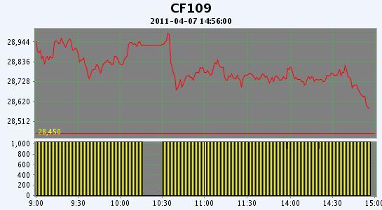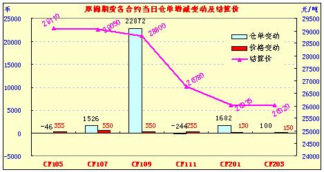 主力CF109合約當日交易走勢