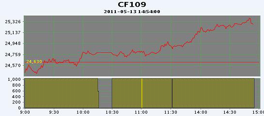 主力CF109合約當(dāng)日交易走勢(shì)