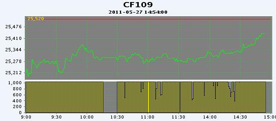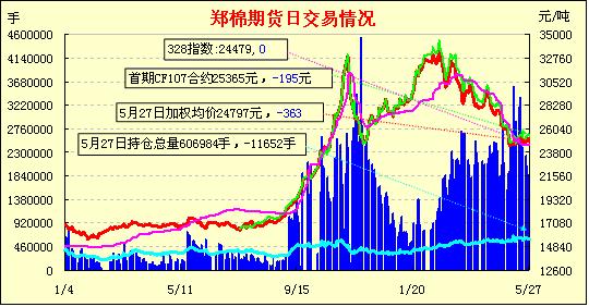 5月27日,鄭棉CF1109合約小幅低開,早盤在多頭買盤支撐下盤升,午后空頭減倉回補支撐期價走高,日線形成小陽線,日內(nèi)成交量萎縮,持倉量減少;鄭棉CF1201合約早盤低開,盤中在多頭買盤推動下上沖,午后一度調(diào)整,尾盤回升走高,日線形成1/2上影線的小陽線,日內(nèi)成交量放大,持倉量增加。CF1109合約日成交791070手,日減倉28204手,終盤持倉量358718手;CF1201合約日成交950794手,日增倉16768手,終盤持倉量218736手?;久媲闆r:現(xiàn)貨行情繼續(xù)毫無波瀾,但是電子的反彈倒是提振了一部分信心,部分地區(qū)還是有了緩慢的 采購。江蘇地區(qū)的紡織廠紗線價格仍在下降,業(yè)內(nèi)人士表示,價格下降的幅度根據(jù)每個廠的承受能力來定,雖然表面上大家降幅的價錢一致, 但是實際成交可能降的更多。目前長江流域的旱情也給市場帶來一定的支撐,旱情的持續(xù)對新年度棉花的產(chǎn)量和質(zhì)量都有影響。