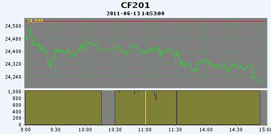 主力CF201合約當日交易走勢
