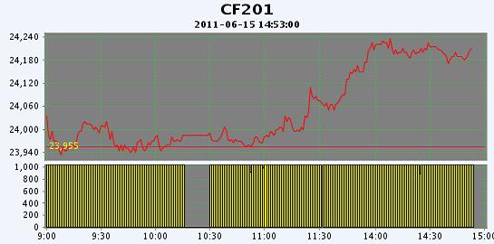 主力CF201合約當日交易走勢