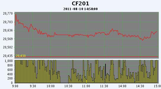 主力CF201合約當(dāng)日交易走勢