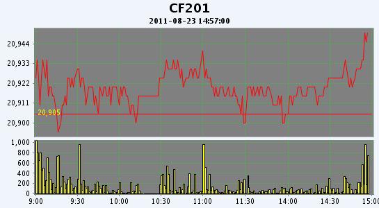 8月23日,鄭棉主要合約微幅高開,盤中窄幅整理,日線形成小陽線,日內(nèi)成交量萎縮,持倉量變化不大。CF1201合約日成交34020手,日減倉5998手,終盤持倉量220350手;CF1205合約日成交344590手,日增倉7814手,終盤持倉量354742手?;久媲闆r:國內(nèi)棉花現(xiàn)貨市場棉花價格表現(xiàn)平穩(wěn),隨著紡織企業(yè)前期采購不積極,多數(shù)紡織企業(yè)庫存已經(jīng)不足維持生產(chǎn),急需補庫。當前紡織企業(yè)積極補庫,中高等級資源需求量比較大,但是從市場來看,資源明顯匱乏。目前隨著新就舊棉花還沒有達到有效接洽,因此對于紡織企業(yè)而言正是青黃不接的時候。目前不少棉花企業(yè)也抓住時機,只要紡織企業(yè)有補庫需求急需采購,皮棉的報價就會小幅上揚,因此當前紡織企業(yè)并沒有出現(xiàn)大規(guī)模集中補庫。在雙方僵持下,棉花成交量依舊不高。當前新花方面,局部地區(qū)已經(jīng)少量采摘及收購,但是隨著今年收購價格不及去年,與棉農(nóng)期望值大相徑庭,因此多為有價無市的掛牌收購。目前各地氣象條件適宜,棉花長勢比較好。