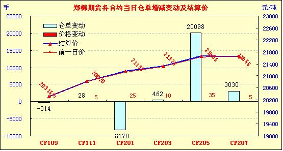8月29日,鄭棉主要合約小幅高開,早盤橫向整理,午前遠期合約在多頭集中買盤推動下沖高,并帶動近期合約減倉上行,午后區(qū)間震蕩,交投重心小幅上移,日線形成小陽線,日內(nèi)成交量萎縮,持倉量近減遠增。CF1201合約日成交41996手,日減倉8170手,終盤持倉量195042手;CF1205合約日成交417336手,日增倉20098手,終盤持倉量448206手。