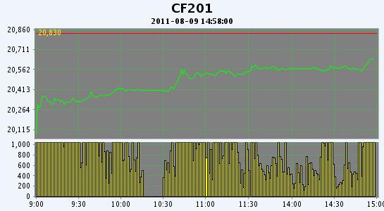 主力CF201合約當日交易走勢