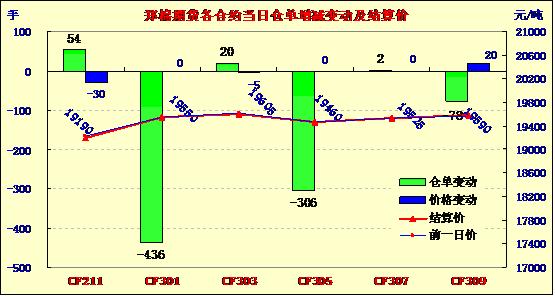 今日鄭棉先抑后昂,成交低迷。CF1301漲5點(diǎn)收報(bào)19555點(diǎn),持倉減436手至211596,成交50828手,較昨日減少31032手。各合約成交叫額65.18億元,比昨日下降近40%。受國外棉花市場低迷、銷售不暢影響,2012年新疆籽棉收購價(jià)格較去年有小幅下降,開秤初期收購價(jià)格為7.6元至7.9元/公斤,9月5日后微漲至8.2元至8.4元/公斤,其后基本穩(wěn)定在8.1元至8.5元/公斤,較去年同期每公斤略低0.2元至0.4元。