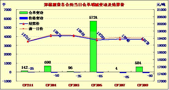 10月29日,鄭棉主要合約平開,盤中橫向區(qū)間盤整,午后走低,日線形成小陰線,遠(yuǎn)期合約成交量萎縮,持倉量增加。CF1301合約日成交23874手,日增倉698手,終盤持倉量168690手;CF1305合約日成交30758手,日增倉5724手,終盤持倉量147916手?;久媲闆r:部分地區(qū)籽棉收購價(jià)格略有上漲,一些棉農(nóng)表示曬干了就賣,認(rèn)為后期收購價(jià)格繼續(xù)上漲的可能性較?。贿€有一些棉農(nóng)表示價(jià)格達(dá)不到心理價(jià)位,惜售如故。棉副方面,市場(chǎng)上棉籽價(jià)格低位出現(xiàn)抗跌情緒,軋花廠在成本壓力增加的情況下有挺價(jià)表現(xiàn),棉粕、棉短絨近期表現(xiàn)持續(xù)低迷,棉殼不溫不火。