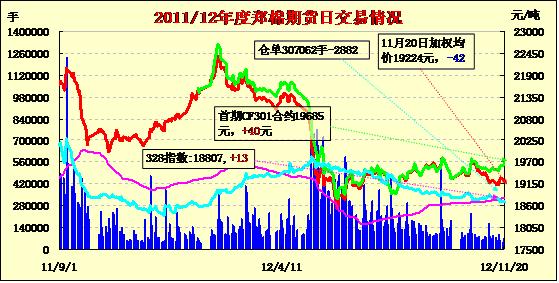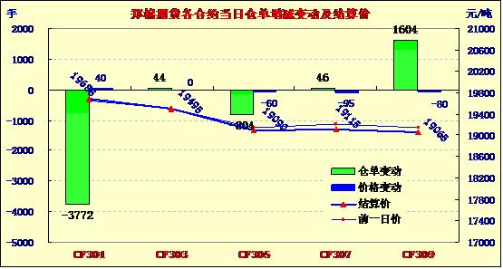 11月20日,鄭棉CF1305合約平開,早盤下試后在空頭回補支撐下反彈盤整,午后空頭賣盤壓制期價下滑,尾盤再度受空頭回補支撐脫離低點,日線形成陰線星,日內(nèi)成交量放大,持倉量略減。CF1301合約日成交15510手,日減倉3772手,終盤持倉量113398手;CF1305合約日成交49756手,日減倉804手,終盤持倉量175908手?;久媲闆r:大部棉區(qū)籽棉采摘基本完成,400型企業(yè)收購依然謹慎,部分地區(qū)籽棉交售進度整體緩慢。由于質(zhì)量較好的棉花進入了國儲,市面上不符合交儲條件的皮棉和低等級棉只能走現(xiàn)貨,成交依然冷清。棉副方面,今日外圍產(chǎn)品市場仍在調(diào)整之中,棉副各產(chǎn)品止跌維穩(wěn),油廠收購棉籽較為謹慎,部分有虧損情況。下游方面,全棉紗行情變化不大,中低檔紗延續(xù)偏弱走勢,出貨不暢;高檔紗方面銷售稍好,部分紗廠停機現(xiàn)場依然存在。