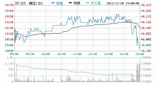 11月30日,鄭棉CF1305合約平開,早盤在多頭平倉(cāng)壓制下走低,隨后多頭買盤支撐期價(jià)反彈震蕩,午后重心略有上移,尾盤收弱,日線形成陰線,日內(nèi)成交量放大,持倉(cāng)量近減遠(yuǎn)增。CF1301合約日成交7272手,日減倉(cāng)4516手,終盤持倉(cāng)量92734手;CF1305合約日成交42092手,日增倉(cāng)2228手,終盤持倉(cāng)量177632手。