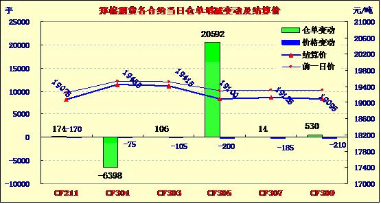 11月5日鄭棉期貨增倉(cāng)放量,遠(yuǎn)月破位。鄭棉主要合約低開(kāi),盤(pán)中在空頭賣(mài)頭賣(mài)盤(pán)與多頭平倉(cāng)打壓下走低,此后橫向盤(pán)整,日線形成低開(kāi)陰線,日內(nèi)遠(yuǎn)期合約成交量成倍放大,持倉(cāng)量近減遠(yuǎn)增。CF1301合約日成交44552手,日減倉(cāng)6398手,終盤(pán)持倉(cāng)量154076手;CF1305合約日成交120898手,日增倉(cāng)20592手,終盤(pán)持倉(cāng)量179316手。基本面情況:部分地區(qū)棉企收購(gòu)量一般,收購(gòu)進(jìn)度較為緩慢,一方面是由于當(dāng)?shù)刈衙拶|(zhì)量不佳,僵瓣和軟白花較多,企業(yè)為了交儲(chǔ)不得不死把質(zhì)量關(guān);另一方面是因收購(gòu)加工成本與交儲(chǔ)價(jià)基本持平,個(gè)別企業(yè)微虧,棉企收購(gòu)積極性不高。今日三級(jí)籽棉收購(gòu)均價(jià)為4.23元/斤,與上周同期持平;四級(jí)棉則跌0.02元,為4.20元/斤。棉副方面,市場(chǎng)上棉油、粕行情有好轉(zhuǎn)跡象,止跌趨暖;棉短絨、棉殼受制于需求低迷狀態(tài),行情延續(xù)弱勢(shì);棉籽購(gòu)銷(xiāo)相對(duì)謹(jǐn)慎,價(jià)格基本維穩(wěn)。