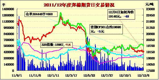 12月6日,鄭棉CF1305合約平開,早盤沖高盤整,盤中高位換手后下滑,午后成交重心下移,日線形成陽線星,日內(nèi)成交量萎縮,持倉量增加。CF1301合約日成交2428手,日減倉1740手,終盤持倉量82784手;CF1305合約日成交37010手,日增倉440手,終盤持倉量178270手?;久媲闆r:由于高等級資源較為緊張,部分地區(qū)棉企搶收籽棉,日收購量能有3-5萬斤。部分棉企在保證不虧本的情況下也在陸續(xù)把不夠交儲標(biāo)準(zhǔn)的現(xiàn)貨銷售給紡織企業(yè),現(xiàn)貨市場略有回暖跡象。新疆方面,目前有獲得農(nóng)發(fā)行貸款支持的棉企大多仍在收購,資金相對比較充足;相比之下靠自籌、融資等的棉企資金相對比較緊張。棉副方面,近期受到貨源逐步減少的支撐,棉籽行情表現(xiàn)較強(qiáng);油脂、粕類行情震蕩使得棉油、粕價格躊躇。