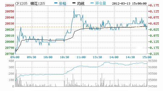 主力CF205合約當(dāng)日分時(shí)交易走勢(shì)