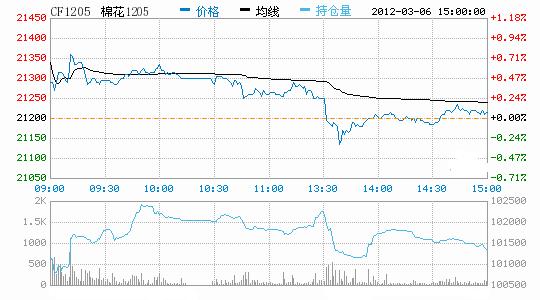 主力CF205合約當(dāng)日分時(shí)交易走勢(shì)