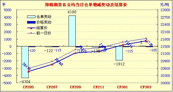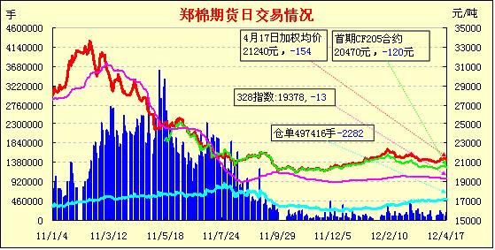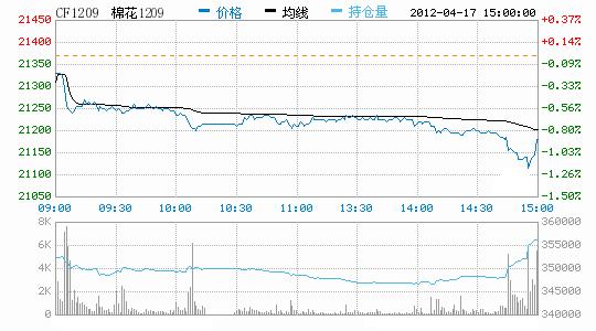 4月17日,鄭棉CF1209合約大幅低開,早盤在多頭平倉壓制下走低,午后增倉下滑,尾盤在多頭承接買盤的支撐下反抽,日線形成低開陰線,主要合約成交量放大,持倉量先減后增。CF1205合約日成交8202手,日減倉4304手,終盤持倉量47814手;CF1209合約日成交158858手,日增倉4190手,終盤持倉量356344手。基本面情況:隨著收儲(chǔ)的結(jié)束以及紡織形勢的迷茫,棉花市場行情延續(xù)不振的態(tài)勢,現(xiàn)貨交易不但成交冷清,價(jià)格還略有下降。部分地區(qū)小廠采用質(zhì)押的方式將皮棉留存到現(xiàn)在,本想等收儲(chǔ)結(jié)束后高等級(jí)資源稀少價(jià)格上漲時(shí),再出售來獲取一定利潤,但以現(xiàn)在這樣的局面,加上存棉費(fèi)用的增加,不賺反虧。棉副方面,棉籽行情依然堅(jiān)挺;棉油、粕行情止?jié)q趨穩(wěn),成交情況尚可;棉短絨外圍稍有好轉(zhuǎn),報(bào)價(jià)穩(wěn)中有升。下游方面,由于棉紗的總體出貨量還不及以往的一個(gè)月,十分差勁,因此市場看淡心里延續(xù),行情疲軟,實(shí)際出貨較少。