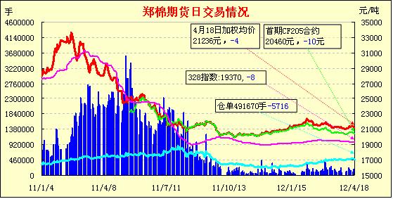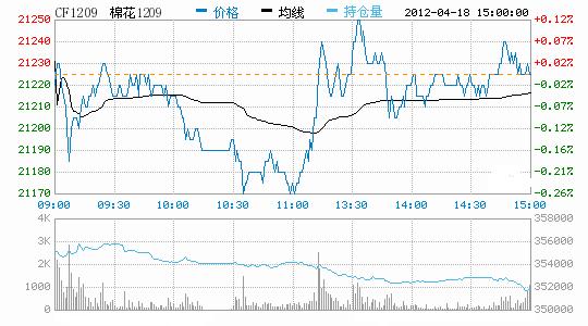 4月18日,鄭棉CF1209合約高開,早盤在多頭平倉壓制下走低,午后在空頭回補(bǔ)支撐下回升,日線形成高開陰線星,主要合約成交量萎縮,持倉量減少。CF1205合約日成交3096手,日減倉1800手,終盤持倉量46014手;CF1209合約日成交83328手,日減倉4484手,終盤持倉量351860手?;久媲闆r:據(jù)了解,多數(shù)棉企已無庫存,即使有庫存也普遍在100噸以下,并且質(zhì)量不算太好,雖有讓利現(xiàn)象但銷售難度依然不小。棉副方面,部分棉籽報(bào)價(jià)小幅下滑;棉油、粕行情高位松動(dòng);棉短絨行情小幅波動(dòng),成交變化不大。下游方面,國內(nèi)各地棉紗市場多穩(wěn),但總體而言出貨仍較不易,紗線廠家?guī)齑鏉u增。
