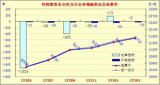 4月25日,鄭棉CF1209合約平開,早盤在平倉盤打壓下走低,隨后多頭買盤支撐期價回穩(wěn)盤整,午后一度在多頭增倉買盤推動下上沖,尾盤受平倉盤壓制下滑,日線形成陽線星,主要合約成交量萎縮,持倉量減少。CF1205合約日成交1926手,日減倉916手,終盤持倉量33142手;CF1209合約日成交59388手,日減倉402手,終盤持倉量369526手?;久媲闆r:受籽棉資源逐漸減少制約,市面上質(zhì)量較好的資源少之又少。大多數(shù)企業(yè)已經(jīng)停止加工,部分地區(qū)個別廠家以加工低等級皮棉為主,保持正常收購,由于高等級棉較難收購,并且加工虧損,反而不如加工低等級花尚勉強有利。今日中東部棉區(qū)普降中雨,這將緩解土壤干燥,有利于播種。據(jù)調(diào)研了解,河北主產(chǎn)棉區(qū)面積減幅不大,河南面積下滑明顯,安徽、湖北主要傳統(tǒng)種植區(qū)域面積穩(wěn)中下降。下游方面,近期全棉紗市場整體延續(xù)清淡弱勢格局,市場觀望為主,成交不多。