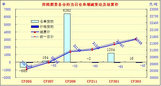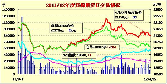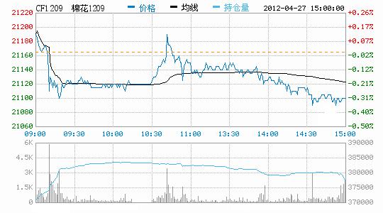 4月27日,鄭棉CF1209合約高開,早盤在空頭增倉打壓下走低盤整,午前一度反彈,但是在空頭賣盤和多頭平倉壓制下震蕩回落,尾盤收低,日線形成陰線,主要合約成交量放大,持倉量增加。CF1205合約日成交2150手,日減倉680手,終盤持倉量29344手;CF1209合約日成交99944手,日增倉6382手,終盤持倉量377454手?;久媲闆r:近日部分地區(qū)市場流傳著將要發(fā)放配額的傳聞,受此影響棉花銷售價格有所下跌,行情低迷不改。部分地區(qū)400型棉企在國家收儲政策的支持下賺取一定的利潤,目前一些廠區(qū)較小的棉企正在積極改造,使廠區(qū)分布規(guī)劃更加合理化,以期在新年度收購期獲取更大的收益。棉副方面,棉籽價格依然堅挺;棉油、粕價格上行阻力較大,目前尚在調(diào)整階段;棉短絨、棉殼弱勢穩(wěn)定。下游方面,國際市場需求依然低迷,出口受阻,受國內(nèi)高價棉影響,我國棉紡織品出口價格優(yōu)勢不斷被削弱,國內(nèi)對進口國際棉紗布意愿增強。