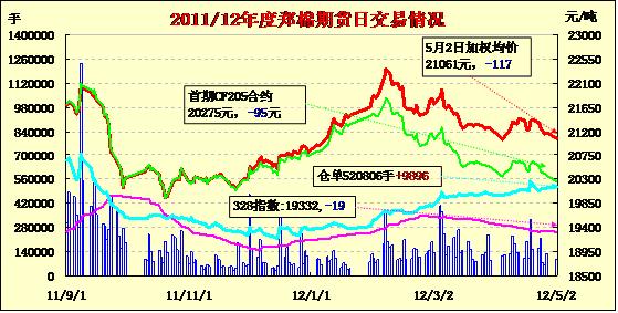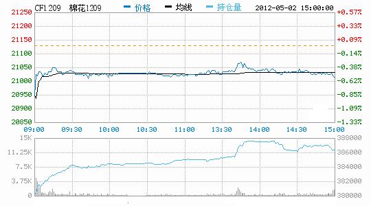 5月2日,勞動節(jié)期間紐期下跌,鄭棉CF1209合約低開,早盤下探后在多頭買盤支撐下回升,此后橫向整理,盤中反彈受到空頭賣盤壓制,日線形成陽線星,主要合約成交量萎縮,持倉量增加。CF1209合約日成交77304手,日增倉8990手,終盤持倉量386444手;CF1301合約日成交14002手,日增倉2016手,終盤持倉量86798手?;久媲闆r:隨著氣溫升高,江蘇鹽城缽育棉生長環(huán)境良好,部分育株已呈兩葉一心,長勢較往年有明顯優(yōu)勢;河北大部分地區(qū)已播種完畢,早期播種的棉田已經(jīng)現(xiàn)苗,較去年植棉完成時間相當(dāng)。近幾日,商品棉撮合交易及鄭期盤面連續(xù)承壓下挫,再加上進(jìn)口棉增發(fā)100萬噸的傳聞等,給仍有囤棉的企業(yè)帶來很大沖擊。