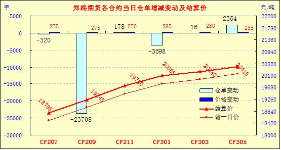 5月21日鄭棉期貨減倉盤整,止跌收漲。今日鄭棉主要合約微幅高開,盤中在空頭回補支撐下橫向盤整,日線形成陽線,主力合約成交量萎縮,持倉量減少,遠期合約增倉放量。CF1209合約日成交173748手,日減倉23708手,終盤持倉量281080手;CF1301合約日成交142668手,日減倉3598手,終盤持倉量195390手。基本面情況:現(xiàn)貨行情承壓,市場表現(xiàn)低迷,報價繼續(xù)下行,企業(yè)信心不足,出貨意愿較強,而下游紡織訂單情況仍不理想,面對原料價格大幅波動的情況,心里沒底,觀望有所增多。外圍大宗油脂持續(xù)走低,限制棉油需求,進一步影響棉籽價格走低。不過今日電子盤棉花行情觸底反彈,對市場信心有一定提振作用,但需求前景未見好轉(zhuǎn)始終制約著棉花行情。