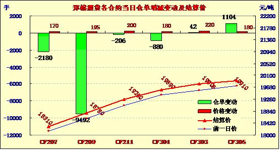 5月24日,鄭棉期貨減倉(cāng)回升,繼續(xù)反彈。今日鄭棉主要合約平開,早盤在空頭回補(bǔ)與多頭買盤支撐下回升,午后一度調(diào)整,隨后空頭回補(bǔ)支撐期價(jià)走強(qiáng),日線形成長(zhǎng)陽(yáng)線,主要合約成交量萎縮,持倉(cāng)量減少。CF1209合約日成交224246手,日減倉(cāng)9492手,終盤持倉(cāng)量265544手;CF1301合約日成交359398手,日減倉(cāng)880手,終盤持倉(cāng)量218954手?;久媲闆r:早間國(guó)家將拋儲(chǔ)30萬噸08-09年度的陳棉的傳聞,令剛有所止跌的電子盤市場(chǎng)進(jìn)一步承壓。現(xiàn)貨方面,部分地區(qū)皮棉價(jià)格有所下跌,企業(yè)對(duì)地產(chǎn)棉關(guān)注度不高,多數(shù)處于有價(jià)無市的狀態(tài)。棉副方面,棉籽收購(gòu)寥寥,棉油稍有回暖,棉短絨呈現(xiàn)弱勢(shì),棉殼基本持平,產(chǎn)品表現(xiàn)難有支撐表現(xiàn)。下游方面,整體需求遲緩,出貨量相對(duì)不足,廠家?guī)齑嬷饾u增加,減限產(chǎn)現(xiàn)象再次增加,部分廠家有放假打算。