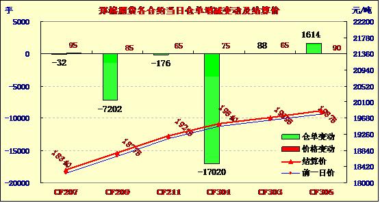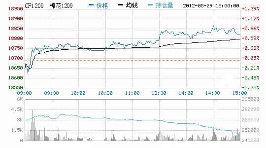 5月29日,鄭棉期貨減倉(cāng)反彈,報(bào)收陽線。今日鄭棉主要合約平開,早盤在空頭回補(bǔ)推動(dòng)下回升盤整,午后空頭繼續(xù)回補(bǔ)支撐期價(jià)反彈,尾盤在多頭平倉(cāng)的壓制下調(diào)整,日線形成陽線,主要合約成交量萎縮,持倉(cāng)量減少。CF1209合約日成交114312手,日減倉(cāng)7202手,終盤持倉(cāng)量247376手;CF1301合約日成交220566手,日減倉(cāng)17020手,終盤持倉(cāng)量220566手?;久媲闆r:現(xiàn)貨銷售冷清,皮棉價(jià)格繼續(xù)小幅下跌,行情疲軟不堪,市場(chǎng)恐慌情緒漸增。在此行情下,政府公布的棉花宏觀調(diào)控政策的目標(biāo)是穩(wěn)定市場(chǎng),這個(gè)導(dǎo)向不會(huì)改變,在市場(chǎng)走低的形勢(shì)下,政府絕不會(huì)打壓市場(chǎng),棉花臨時(shí)收儲(chǔ)政策仍會(huì)堅(jiān)定不移地執(zhí)行下去。棉副方面,棉籽暫時(shí)維穩(wěn),購(gòu)銷清淡;棉油、粕外圍技術(shù)性反彈,短期內(nèi)壓力減輕。下游方面,全棉紗市場(chǎng)行情總體清淡疲弱態(tài)勢(shì)依舊,市場(chǎng)觀望濃重,鮮有成交;紗廠繼續(xù)減產(chǎn),停產(chǎn)歇業(yè)也不在少數(shù)。
