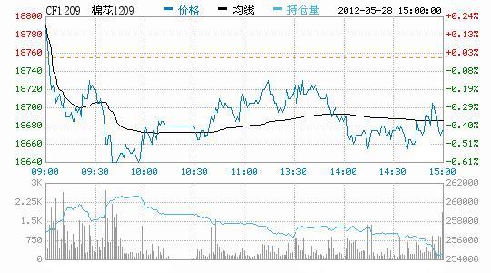 5月28日持續(xù)弱市,期棉增倉下跌。今日鄭棉主要合約平開,早盤在空頭賣盤打壓下走低,隨后多頭買盤與空頭回補支撐期價反彈,午后在空頭賣盤和多頭平倉壓制下回落,日線形成陰線,主要合約成交量萎縮,持倉量近減遠(yuǎn)增。CF1209合約日成交110882手,日減倉2604手,終盤持倉量254578手;CF1301合約日成交263024手,日增倉15006手,終盤持倉量237586手?;久媲闆r:皮棉現(xiàn)貨價格仍無起色,部分囤棉棉商悲觀和恐懼心理加重,不得不再次壓低價格走貨,但登門采購的紡企仍然較少。棉副方面,棉籽供應(yīng)進入后期,價格小跌;外圍行情不振,棉油跌幅加大。