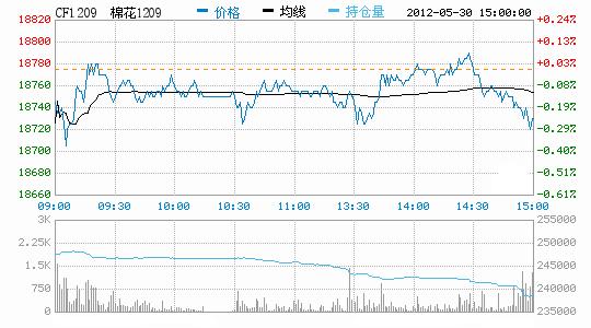 5月30日期棉反彈回落,均線承壓。今日鄭棉主要合約低開,早盤在多頭買盤推動(dòng)下回升盤整,午后一度上沖,尾盤在多頭平倉與空頭賣盤壓制下回落,日線形成星線,主要合約成交量萎縮,持倉量近減遠(yuǎn)增。CF1209合約日成交61234手,日減倉8416手,終盤持倉量238960手;CF1301合約日成交160180手,日增倉9448手,終盤持倉量230014手?;久媲闆r:電子盤出現(xiàn)反彈之勢,但現(xiàn)貨市場未能得到相應(yīng)的刺激,行情低迷依舊。棉副方面,外圍油脂粕類行情反彈,棉油、粕有回暖之意;棉籽行情止跌企穩(wěn);棉短絨成交困難,行情仍不明朗。下游方面,各地主要市場棉紗報(bào)價(jià)仍有小幅度下調(diào),市場看跌氣氛濃重。