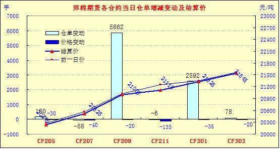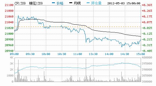 5月3日,鄭棉CF1209合約低開(kāi),早盤(pán)在多頭買盤(pán)支撐下回升,盤(pán)中橫向整理增倉(cāng),隨后多頭平倉(cāng)與空頭賣盤(pán)共同打壓期價(jià)回落,午間急跌,午后重心下移弱市整理,日線形成1/2上影線的陰線,主要合約成交量變化不大,持倉(cāng)量增加。CF1209合約日成交82552手,日增倉(cāng)5862手,終盤(pán)持倉(cāng)量392306手;CF1301合約日成交17140手,日增倉(cāng)2592手,終盤(pán)持倉(cāng)量89390手。基本面情況:廣交會(huì)第三期紡織服裝類展5月1日至5日如期舉行,據(jù)了解今年繼續(xù)以簽訂短單、小單為主,歐美大單流失嚴(yán)重。由于紡企經(jīng)營(yíng)較為困難,資金壓力較大,加之印度取消出口禁令和之前的配額傳聞,國(guó)內(nèi)現(xiàn)貨價(jià)格有所下降。棉副方面。棉籽價(jià)格受成交萎縮、貨源稀少的影響價(jià)格略有下調(diào);棉油、粕價(jià)格暫時(shí)穩(wěn)定;棉短絨則延續(xù)弱勢(shì)行情。