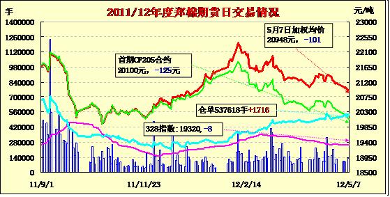 5月7日,鄭棉CF1209合約低開,早盤在多頭止損盤打壓下走低,隨后盤整增倉,午后多頭止損盤再度打壓期價(jià)下滑,此后低位弱市震蕩,日線形成陰線,主要合約成交量增加,持倉量變化不大。CF1209合約日成交107048手,日增倉120手,終盤持倉量396378手;CF1301合約日成交25250手,日增倉1834手,終盤持倉量93862手。基本面情況:目前棉價(jià)持續(xù)低迷,內(nèi)地紡企大多在堅(jiān)持等待滑準(zhǔn)關(guān)稅棉花進(jìn)口配額的下發(fā),赴疆內(nèi)采購的用棉企業(yè)、貿(mào)易公司比較少。下游方面, 從昨日閉幕的廣交會三期上了解到,現(xiàn)在國內(nèi)外棉價(jià)處于“倒掛”的狀態(tài),再加上國際需求增長放緩、國內(nèi)勞動力成本持續(xù)上漲等,都有可能成為壓垮企業(yè)的“最后一根稻草”,并且在低端棉紡織制品上,中國已經(jīng)失去了價(jià)格優(yōu)勢。目前,整個(gè)紡織行業(yè)仍以小而零散的訂單居多。棉副方面,目前粕強(qiáng)油弱的格局暫時(shí)持續(xù);棉籽受貨源稀少的影響,價(jià)格繼續(xù)下跌。