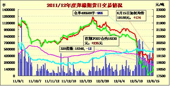 6月15日,鄭棉主要合約高開(kāi),早盤(pán)沖高后橫向整理,午后向下調(diào)整,尾盤(pán)在空頭回補(bǔ)與多頭買(mǎi)盤(pán)推動(dòng)下上行,日線形成陽(yáng)線,日內(nèi)成交量萎縮,持倉(cāng)量變化不大。CF1209合約日成交71422手,日增倉(cāng)256手,終盤(pán)持倉(cāng)量151778手;CF1301合約日成交475728手,日減倉(cāng)746手,終盤(pán)持倉(cāng)量271668手?;久媲闆r:面對(duì)如今棉市疲軟的形勢(shì),部分棉企則認(rèn)為棉價(jià)將反彈,原因是越臨近新棉上市市面上流通的皮棉就越緊張,而且國(guó)家也不會(huì)打壓棉價(jià);另一部分棉企則認(rèn)為國(guó)內(nèi)外經(jīng)濟(jì)環(huán)境不景氣,出口受阻、消費(fèi)下降等原因致使棉價(jià)難有起色。棉副方面,進(jìn)入后期以來(lái),整體行情延續(xù)弱勢(shì),外圍維持油弱粕強(qiáng)的格局;棉短絨行情持續(xù)低迷,價(jià)格下跌。