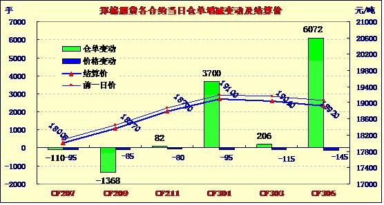 6月27日,鄭棉主要合約微幅低開,早盤下探后在空頭回補(bǔ)與多頭買盤支撐下反彈整理,午后增量下滑盤整,日線形成星線,日內(nèi)成交量萎縮,持倉量近減遠(yuǎn)增。CF1209合約日成交8874手,日減倉1304手,終盤持倉量131658手;CF1301合約日成交106566手,日增倉3700手,終盤持倉量279498手?;久媲闆r:全國大范圍降雨仍在持續(xù),現(xiàn)貨成交清淡,因?yàn)榇婷奁髽I(yè)皮棉庫存不多,提貨商無選擇余地。據(jù)了解,目前有部分大型紡織企業(yè)適量采購皮棉,基本上把生產(chǎn)線盡量放慢,減少時(shí)間生產(chǎn)。棉副方面,行情整體有所回暖,棉籽穩(wěn)中有漲;因外圍產(chǎn)品走勢震蕩調(diào)整,棉油、粕繼續(xù)上漲遇阻;棉短絨仍以弱勢為主。