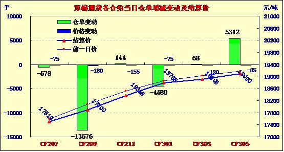 6月5日鄭棉期貨減倉(cāng)反彈,報(bào)收小陽(yáng)。今日鄭棉近期合約跳空低開(kāi),遠(yuǎn)期合約小幅高開(kāi),早盤(pán)橫向整理,午后在空頭回補(bǔ)的支撐下反彈震蕩,日線形成低開(kāi)小陽(yáng)線,遠(yuǎn)期合約收高開(kāi)陽(yáng)線星,近期合約成交量放大,遠(yuǎn)月成交萎縮,持倉(cāng)量減少。CF1209合約日成交102844手,日減倉(cāng)13576手,終盤(pán)持倉(cāng)量206412手;CF1301合約日成交234462手,日減倉(cāng)4580手,終盤(pán)持倉(cāng)量246888手?;久媲闆r:現(xiàn)貨市場(chǎng)更加疲軟不堪,皮棉價(jià)格持續(xù)下跌,成交清淡,行情難現(xiàn)曙光。棉副方面,棉籽價(jià)格穩(wěn)定,貨源稀少,成交不理想;外圍油脂油粕行情低迷,棉油、粕價(jià)格受限;皮棉價(jià)格下跌,棉短絨價(jià)格也是難有提振。