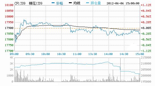 6月6日,鄭棉主要合約低開,早盤在多頭買盤推動下上沖,盤中高位震蕩換手,午后在多頭平倉和空頭賣盤壓制下盤跌,日線形成低開陽線星,近期合約成交量變化不大,持倉量近減遠(yuǎn)增。CF1209合約日成交89034手,日減倉4602手,終盤持倉量201810手;CF1301合約日成交257794手,日增倉10906手,終盤持倉量257794手?;久媲闆r:現(xiàn)貨價格續(xù)跌,部分購棉企業(yè)見此行情不敢輕易購棉,再加上國際棉花價格繼續(xù)下跌,內(nèi)外棉價差持續(xù)擴(kuò)大,地產(chǎn)棉幾乎無人問津,現(xiàn)貨成交困難。棉副方面,產(chǎn)品整體顯疲態(tài),棉油、棉短絨、棉殼價格均小幅下跌;棉籽、棉粕暫時維穩(wěn)。下游方面,受棉花表現(xiàn)疲軟,下游需求不振影響,進(jìn)口棉紗也有所下調(diào)。