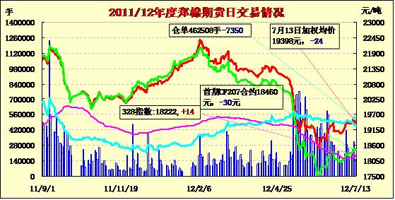7月13日,鄭棉CF1301合約低開,盤中在多頭買盤推動下震蕩上行,日線形成低開小陽線,日內(nèi)成交縮量,持倉量近減遠(yuǎn)增。CF1209合約日成交7984手,日減倉2190手,終盤持倉量101572手;CF1301合約日成交103130手,日增倉4478手,終盤持倉量286936手?;久媲闆r:江淮地區(qū)仍持續(xù)降雨,由于較長時(shí)間潮濕寡照,部分棉花長勢欠佳,棉農(nóng)積極投入田間補(bǔ)救,力爭棉花生育如期達(dá)標(biāo)。據(jù)了解,部分棉紡廠為了盡可能降低成本、保證開機(jī)率而采購低等級地產(chǎn)棉,并且等待國家政策進(jìn)一步指引。棉副方面,棉油、粕報(bào)價(jià)仍呈現(xiàn)穩(wěn)中有漲的格局;短絨需求清淡,弱勢為主。下游方面,全棉紗銷售批量稍有增加,但下游看空心態(tài)也有所增加。