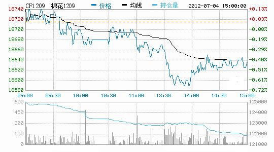 7月4日,鄭棉主要合約高開,早盤在空頭賣盤打壓下震蕩走低,午后觸及日低后在多頭買盤支撐下反彈,日線形成小陰線,日內(nèi)成交量萎縮,持倉量增加。CF1209合約日成交114608手,日減倉3150手,終盤持倉量121898手;CF1301合約日成交258748手,日增倉12580手,終盤持倉量300896手?;久媲闆r:內(nèi)地新疆棉的成交情況有所好轉(zhuǎn),但對價(jià)格的消化能力比較弱;河南部分地區(qū)成交略顯活躍,當(dāng)?shù)氐拿藜弿S采購地產(chǎn)棉較多,主要是以弱三級、弱四級棉花為主。下游方面,棉紗市場整體成交零散,雖散批量出貨于上周持平,但大批量交易較少。