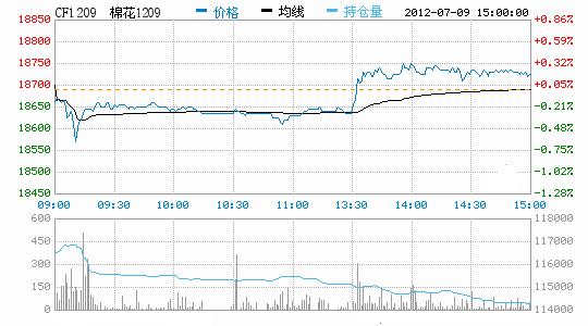7月9日鄭棉維持震蕩。今日鄭棉探低反彈,午后價格上沖無力后在高位震蕩。CF1301開盤價19500元/噸,最高價19540元/噸,最低價19340元/噸,收盤價19490元/噸,漲15元/噸;日成交量為169018手;持倉量減少,日減倉5494手至290726手。CF1209收于18725元/噸,漲30元/噸;日成交量為10932手;持倉量減2532手至114304手。棉花現(xiàn)貨市場價格隨著撮合市場和期貨市場的止跌企穩(wěn),市場還是處于有價無市的狀態(tài)。328為18168元/噸,漲9;527為15844元/噸,漲15元/噸;229指數(shù)為19322元/噸,漲2元/噸。近期基本面弱勢不改,美國主產(chǎn)區(qū)出現(xiàn)降雨,旱情有所緩解;上周美國棉花出口銷售報告尚可。預(yù)計主力CF1301將在18700元/噸至19700元/噸震蕩。