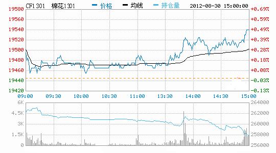 8月30日鄭棉期貨空頭回補(bǔ),調(diào)整收高。今日鄭棉CF1301合約小幅高開(kāi),早盤(pán)調(diào)整后在空頭回補(bǔ)與多頭買(mǎi)盤(pán)支撐下上行盤(pán)整,午后重心上移,日線(xiàn)形成小陽(yáng)線(xiàn),日內(nèi)成交量放大,持倉(cāng)量下降。CF1301合約日成交87516手,日減倉(cāng)2804手,終盤(pán)持倉(cāng)量257920手;CF1305合約日成交8622手,日減倉(cāng)1104手,終盤(pán)持倉(cāng)量83030手。基本面情況:隨著新棉收購(gòu)的臨近,棉花企業(yè)的準(zhǔn)備工作也基本就緒,預(yù)計(jì)開(kāi)秤時(shí)間大約在九月中旬。棉副方面,外圍油脂行情回落,棉油價(jià)格下行壓力增大;豆粕行情堅(jiān)挺,棉粕價(jià)格穩(wěn)定;棉短絨行情依舊不振;棉殼價(jià)格穩(wěn)中有漲。下游方面,全棉紗行情仍整體維持弱勢(shì)盤(pán)整格局,但下游需求依然不足,大單成交較少。