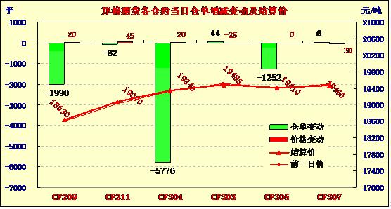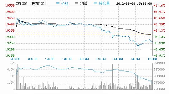 8月8日,鄭棉CF1301合約低開,早盤震蕩整理,午后在多頭平倉的壓制下走低,日線形成小陰線,日內(nèi)成交量變化不大,持倉量減少。CF1301合約日成交189078手,日減倉5776手,終盤持倉量275334手;CF1305合約日成交12806手,日減倉1252手,終盤持倉量83556手。基本面情況:北方大范圍較強降水導(dǎo)致山東、河北的部分棉區(qū)遭受遭害,棉株有倒伏現(xiàn)象,給棉農(nóng)造成一定的損失,但由于棉花后期的可修復(fù)性較強,若8-9月份天氣條件利好,棉農(nóng)積極投入田間管理,產(chǎn)量不會受到太大的影響。現(xiàn)貨市場方面,皮棉成交仍不樂觀,部分地區(qū)購銷停滯。因為有國家收儲政策帶動,有部分棉企對后市保持樂觀。棉副方面,市場上棉油、粕行情表現(xiàn)仍較為堅挺;棉殼表現(xiàn)延續(xù)近期良好態(tài)勢;棉短絨行情仍無起色,需求清淡。下游方面,棉紗市場近期回暖氛圍延續(xù),多數(shù)紗廠出貨情況有好轉(zhuǎn),雖然目前訂單主要還是小單、散單偏多,但是紗廠心態(tài)已經(jīng)有所改善。