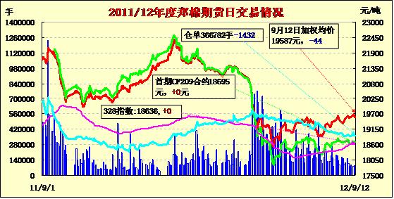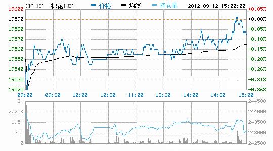 9月12日鄭棉期貨低開反彈,成交縮量。CF1301合約低開,盤中在多頭心買盤與空頭回補支撐下震蕩反彈,日線形成小陽線星,日內(nèi)主力合約成交量萎縮,持倉量減少。CF1301合約日成交45750手,日減倉332手,終盤持倉量243096手;CF1305合約日成交15176手,日減倉1070手,終盤持倉量108642手?;久媲闆r:國家收儲政策如期而至,400型棉企積極準備。但部分棉企因資金、人員等問題難以利用收儲平臺,所以經(jīng)多方籌措,采取“聯(lián)合經(jīng)營”方式,來做好籽棉收購工作。棉副方面,因現(xiàn)貨油脂、粕類報價全面下跌,使得棉油、粕行情受到影響;棉短絨行情延續(xù)弱勢;棉殼高位受阻,表現(xiàn)下滑;新籽上市量依然不大。