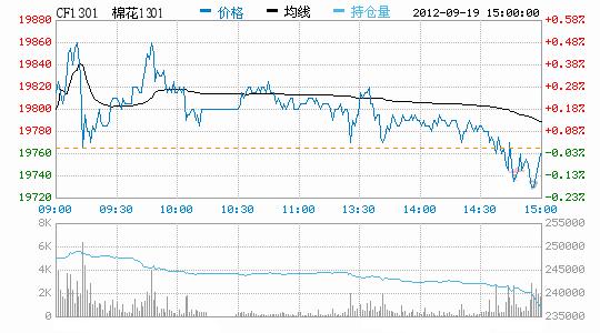 9月19日,鄭棉CF1301合約低開,早盤寬幅震蕩后在多頭平倉壓制下走低,日線形成陰線星,日內(nèi)主力合約成交量萎縮,持倉量大幅減少。CF1301合約日成交168472手,日減倉10290手,終盤持倉量237088手;CF1305合約日成交24186手,日增倉980手,終盤持倉量112210手?;久媲闆r:部分地區(qū)收購上來的籽棉質(zhì)量仍然不佳,因此為規(guī)避風(fēng)險,一些棉花企業(yè)放緩收購進(jìn)度。棉副方面,因外圍油脂、豆粕行情跌幅較大,棉油、粕價格穩(wěn)中略跌。下游方面,全棉紗價格穩(wěn)定,交易批量零散,內(nèi)銷市場溫和。