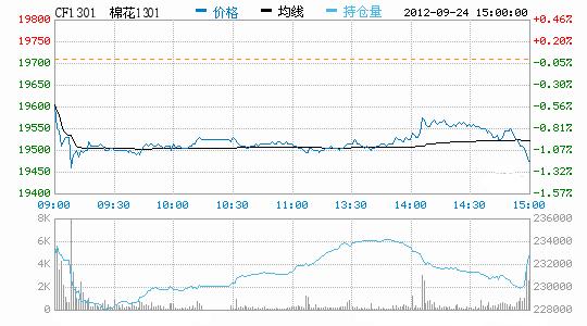 9月24日鄭棉期貨跳空下跌,增倉收低。CF1301合約低開,早盤在多頭平倉打壓下走低,隨后空頭回補(bǔ)與多頭買盤支撐期價(jià)反彈,導(dǎo)盤在空頭賣盤打壓墳下收弱,日線形成低開陰線,日內(nèi)主力合約成交量溫和放大,持倉量增加。CF1301合約日成交113762手,日增倉1424手,終盤持倉量232838手;CF1305合約日成交21224手,日增倉156手,終盤持倉量110324手?;久媲闆r:多數(shù)400型加工企業(yè)仍未入市收購,除了前期花水分大質(zhì)量不佳之外,最主要的原因就是棉花行情,大多企業(yè)逐漸變得理性,不再一到棉花收購季節(jié)就盲目開秤,有一定的觀望心理存在。棉副方面,受外圍環(huán)境轉(zhuǎn)弱回落影響,近期棉副產(chǎn)品整體表現(xiàn)不佳,價(jià)格普遍略有下跌。下游方面,全棉紗行情維持平淡,但成交批量不足,需求零散行情暗沉。