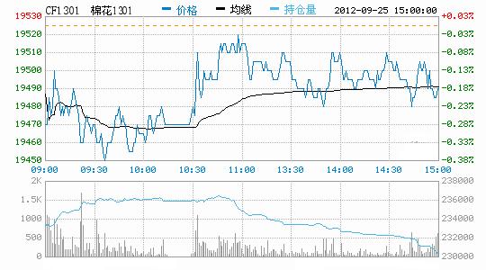 9月25日,鄭棉CF1301合約高開,早盤在空頭賣盤打壓下走低盤整,午間空頭回補(bǔ)支撐期價(jià)反彈,午后交投重心上移,日線形成陽(yáng)線星,日內(nèi)主力合約成交量萎縮,持倉(cāng)量減少。CF1301合約日成交52402手,日增倉(cāng)2514手,終盤持倉(cāng)量230324手;CF1305合約日成交17870手,日減倉(cāng)398手,終盤持倉(cāng)量109926手。基本面情況:由于近期部分籽棉質(zhì)量明顯好轉(zhuǎn),吸引棉廠陸續(xù)開稱收購(gòu)和開車加工。因?yàn)楸灸甓葒?guó)家不收儲(chǔ)5級(jí)皮棉,再加上紡織企業(yè)對(duì)棉花需求不佳,現(xiàn)貨市場(chǎng)風(fēng)險(xiǎn)較大,所以棉廠在收購(gòu)加工時(shí)嚴(yán)格掌控棉花質(zhì)量等級(jí),盡量將籽棉加工成4級(jí)及以上皮棉。棉副方面,市場(chǎng)上大宗商品延續(xù)弱勢(shì),棉油、粕等產(chǎn)品難以獨(dú)善其身,行情回調(diào)幅度較大,同時(shí)市場(chǎng)需求表現(xiàn)不佳,形成了油廠收購(gòu)棉籽謹(jǐn)慎的局面。下游方面,8、9月份原本是萬(wàn)眾期盼的行業(yè)旺季,但眼看旺季即將過去,近期各地紗線市場(chǎng)行情卻是依舊低迷,成交慘不忍睹,市場(chǎng)人士心態(tài)低落。