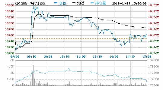 1月9日鄭棉1305合約沖高回落,小幅收陽(yáng),開(kāi)盤報(bào)19240元/噸,收盤于19260元/噸,較前一交易日上漲10元/噸,最高價(jià)19370元/噸,最低價(jià)19200元/噸。成交量小幅增加為77330手,持倉(cāng)量增加208手至173212手。近期1301合約繼續(xù)收跌,開(kāi)盤報(bào)19830元/噸,收盤于19850元/噸,較前一交易日跌135元/噸,最高價(jià)19990元/噸,最低價(jià)19830元/噸。成交量554手,持倉(cāng)量減440手至8608手。