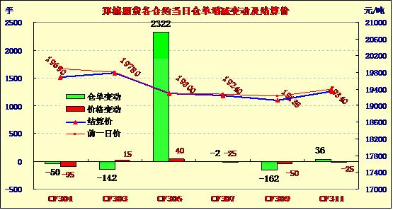 1月11日,鄭棉CF1305合約高開,早盤增倉上試后回落,午后重心上移,日線形成1/2下影線的陽線,日內(nèi)成交量放大,持倉量增加。CF1301合約日成交898手,日減倉34手,終盤持倉量8002手;CF1305合約日成交52356手,日增倉2322手,終盤持倉量175382手。基本面情況:由于今年收購加工交儲速度較快,部分地區(qū)籽棉交售速度較去年快三成左右,但受資源逐漸減少的影響,個別資金緊張的棉花企業(yè)已經(jīng)無力可圖,因此暫時停止了籽棉收購工作。紡織企業(yè)仍然關(guān)注儲備棉投放政策,由于下游成交依舊清淡,部分紡企表示競拍國儲棉也將視自身經(jīng)營情況適時競拍。棉副方面,棉油、粕需求較為低迷,價格弱勢調(diào)整;棉短絨、棉殼近期受到下游產(chǎn)品轉(zhuǎn)暖提振,行情看漲;棉籽價格依然易漲難跌。