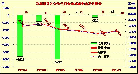 1月17日,鄭棉CF1305合約高開,早盤上沖后在平倉盤壓制下走低,午后在空頭回補作用下反彈盤整,日線形成陰線星,日內(nèi)成交量萎縮,持倉量減少。CF1305合約日成交49564手,日減倉5992手,終盤持倉量178110手;CF1309合約日成交9418手,日減倉326手,終盤持倉量69966手。近期CF1301合約收于19400元,較昨日下挫375元,日成交1352手,日減倉5628手,終盤持倉量清空,交割價由20300元/噸跌至目前的19820元?;久媲闆r:儲備棉投放已經(jīng)持續(xù)兩日,受紡織企業(yè)普遍缺乏資源及春節(jié)前想備貨的搶購心態(tài)影響,市場反響較熱烈,多數(shù)企業(yè)積極參與。但仍有一部分小型紡企不進(jìn)行拍儲,主要少量采購現(xiàn)貨市場進(jìn)口棉、小包地產(chǎn)棉,隨用隨買。