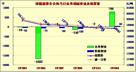 1月28日,鄭棉CF1305合約低開(kāi),盤(pán)中區(qū)間震蕩,午后在空頭回補(bǔ)支撐下反彈,日線形成低開(kāi)陽(yáng)線,日內(nèi)成交量萎縮,持倉(cāng)量減少。CF1305合約日成交32142手,日減倉(cāng)1682手,終盤(pán)持倉(cāng)量155006手;CF1309合約日成交21498手,日減倉(cāng)146手,終盤(pán)持倉(cāng)量75848手?;久媲闆r:隨著時(shí)間推移,現(xiàn)貨市場(chǎng)節(jié)日氣氛漸濃,棉花、紡織企業(yè)陸續(xù)放假。籽棉資源量所剩無(wú)幾,而且近期中東部棉區(qū)天氣不利于加工,多數(shù)企業(yè)停收,而且運(yùn)輸也多有不便,購(gòu)銷受到延誤,皮棉現(xiàn)貨價(jià)格波動(dòng)有限。受到外盤(pán)強(qiáng)勁帶動(dòng),電子盤(pán)呈現(xiàn)漲勢(shì),熱情漸高漲。