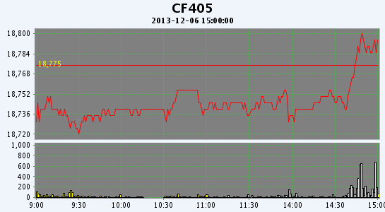 12月6日,鄭棉CF1405合約高開,盤中橫向整理,尾盤在多頭集中買盤推動下上揚,日線形成1/2小影線的小陽線,日內(nèi)成交量萎縮,持倉量增加。CF1401合約日成交518手,日減倉416手,終盤持倉量8402手;CF1405合約日成交7450手,日增倉966手,終盤持倉量69164手。
